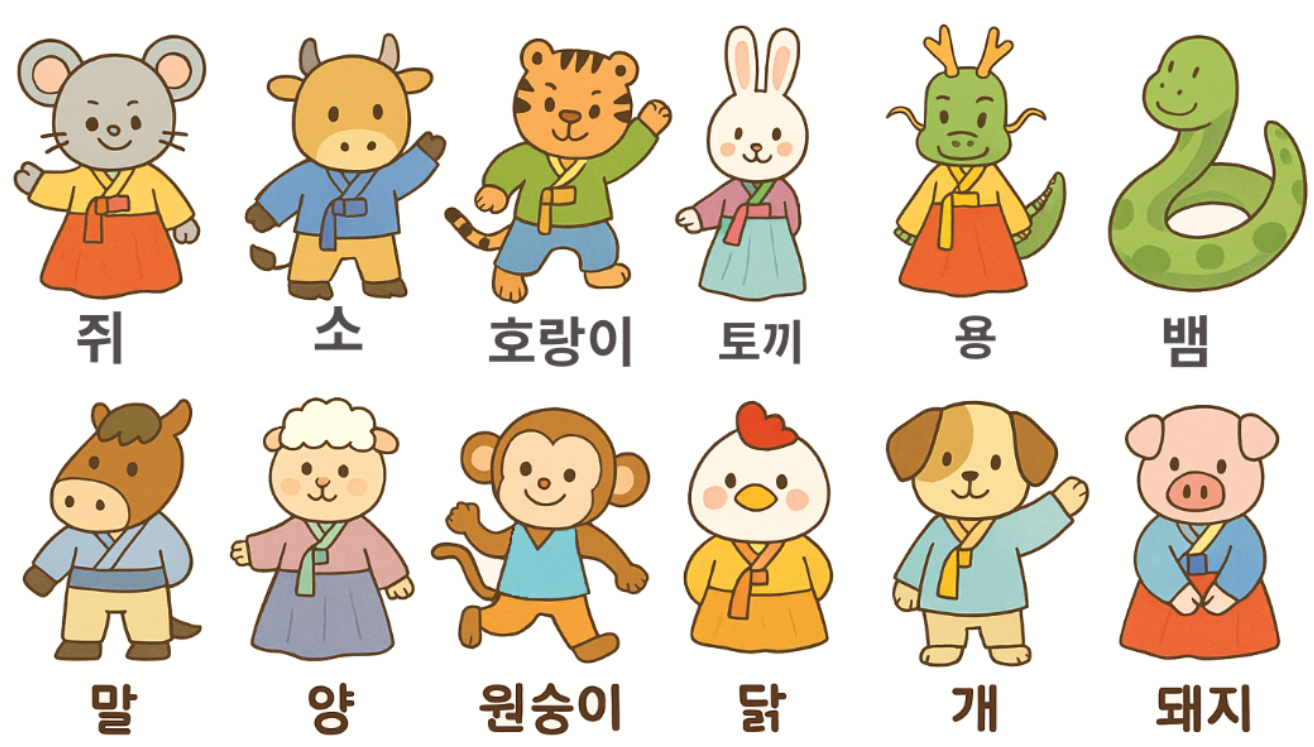 이 12글자가 바로 십이지(十二支)이며, 각각의 지지는 동물 한 마리와 대응된다.